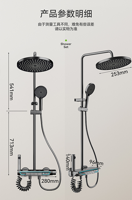• 59A黄铜内芯,太空铝壳体,2.0MM太空铝淋浴管,太空铝喷枪和太空铝墙座,滑套。